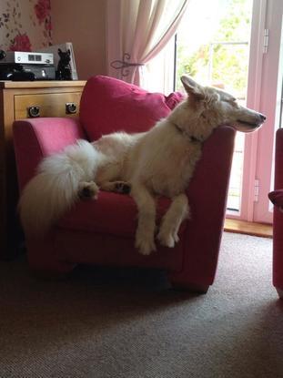 Friendly with other dogs despite having a loud bark (all bark and no bite - a big wuss really). Likes to be top dog but has no aggression unless provoked.